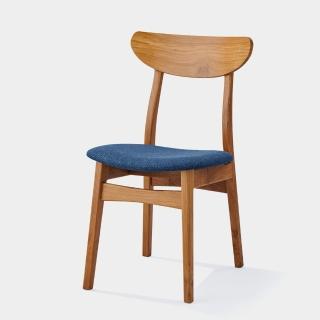 【東隅居家 柚木系列】柚木MidCentury餐椅-藍色椅墊(實木椅)