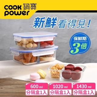 【CookPower 鍋寶】分隔耐熱玻璃保鮮盒標配3件組(EO-BVG06011021431)