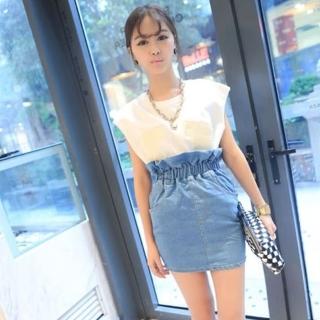 【米蘭精品】牛仔裙迷你裙(花苞鬆緊高腰復古丹寧女裙子66y39)