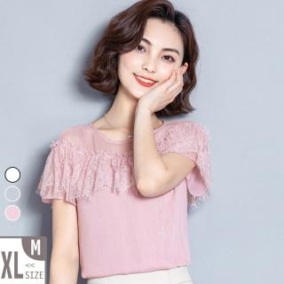 【MsMore】韓國粉紅美人蕾絲拼接氣質冰柔上衣104496現貨+預購(3色)