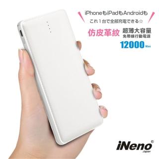 【日本iNeno】超薄名片型皮革紋免帶線行動電源12000mAh-贈Apple轉接頭(免帶線基本款 升級大容量)