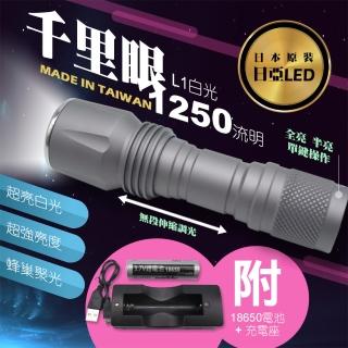 【千里眼】特惠組-千里眼 L1-白光 自由調焦 1250流明 超強亮度手電筒(手電筒 高亮度 露營 登山)