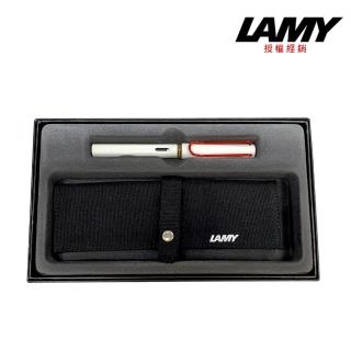 【LAMY】狩獵系列亮白色復古紅夾鋼筆筆袋禮盒(捲軸黑)