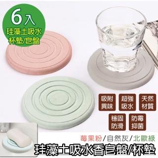【阿莎&布魯】珪藻土吸水香皂盤/杯墊(超值六入組)