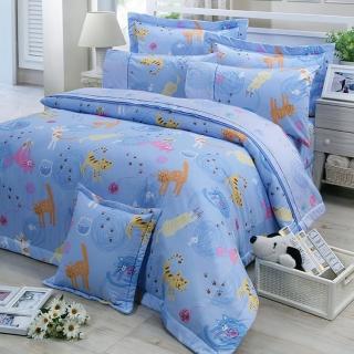 【FITNESS】精梳棉單人五件式床罩組-貓線球(藍 粉 黃 三色可供選擇)