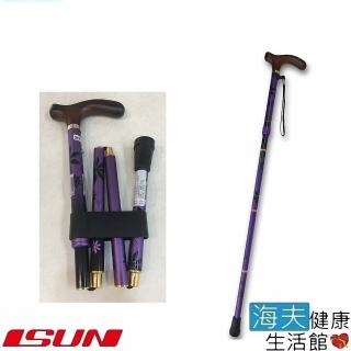 【海夫健康生活館】宜山 折疊伸縮手杖 紫色和風/6段調高/楓木握把/台灣製造(CAP-5009)