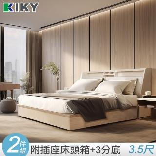 【KIKY】巴清收納可充電床組-單人加大3.5尺 開學季必備-外宿租屋推薦款(床頭箱+三分床底)