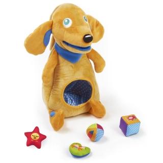 可將柔軟的布偶球放進,布偶嘴裡體驗照顧及餵食,訓練手指運動及學習發展