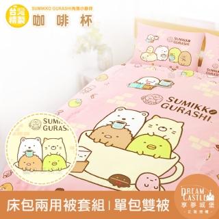 【享夢城堡】單人床包雙人兩用被套三件組(角落小夥伴 咖啡杯-粉.黃)