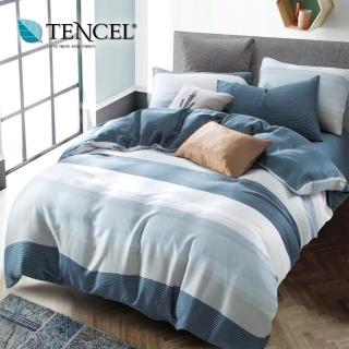 【貝兒居家寢飾生活館】100%天絲四件式全鋪棉兩用被床包組 時尚先生藍(特大)