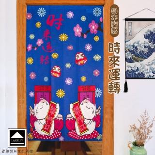 【LASSLEY】日本門簾-時來運轉 85X150cm(日式 和風 招財貓 雙開式 風水簾 一片式)