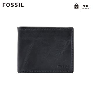 【FOSSIL 官方旗艦館】Derrick 海軍藍真皮帶翻轉證件格RFID皮夾 男 短夾 ML3681406