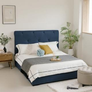 【FL 滿屋生活】FL Brizo 貝朵 - 5尺藍菱格拉扣實木高背床架(實木床架/高背床架/拉扣床/標準雙人/5x6.2尺)
