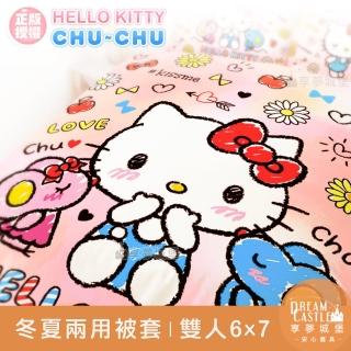 【享夢城堡】雙人冬夏兩用被套6x7(HELLO KITTY CHU CHU-粉)
