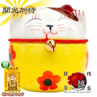 【馥瑰馨盛】金運茶花招財貓撲滿擺件含座墊l祝賀開店momo獨家5件組(含開光加持)