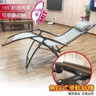 最大仰角165度人體工學設計,椅腳固定架,穩固不側翻,頭●腳部連動 無階段重心躺椅