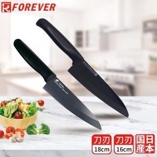 【FOREVER 鋒愛華】日本製造鋒愛華高精密黑鑽陶瓷刀雙刀組18+16CM(黑刃黑柄)