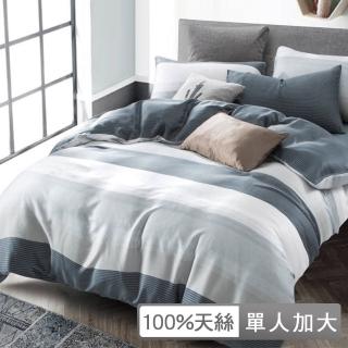 【貝兒居家寢飾生活館】100%天絲三件式全鋪棉兩用被床包組 時尚先生藍(單人加大)