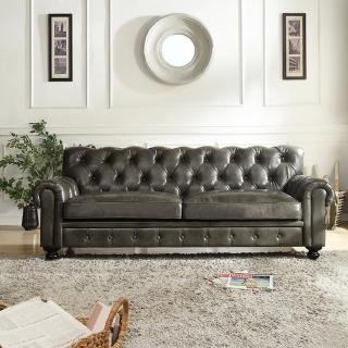 【FL 滿屋生活】FL Stanhope 史丹普 - 經典英式拉扣復古三人座皮沙發(真皮沙發/復古拉扣/實木沙發)