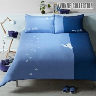【Yvonne Collection】100%美國純棉被套+枕套組-貓咪 藍紫(加大)