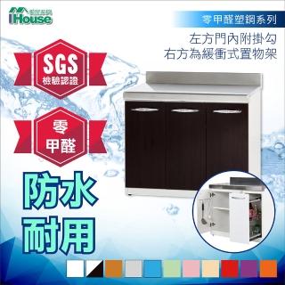 【IHouse】零甲醛 環保塑鋼3門平檯附可拉式置物架寬95深56高82cm