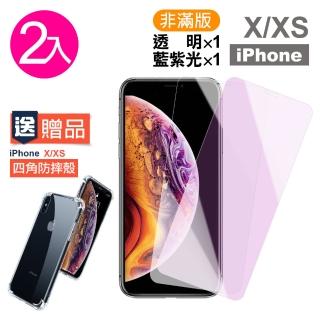 iPhone X XS 非滿版9H鋼化膜手機保護貼 透明 藍紫光(買膜送手機殼)