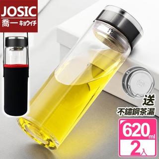 【JOSIC】斜提把高耐熱泡茶玻璃杯水杯600ml-2入(贈隔熱潛水杯套*2)