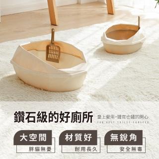 【IDEA】大號-鑽石網格雙層貓砂盆/便盆(附貓鏟/三色任選)