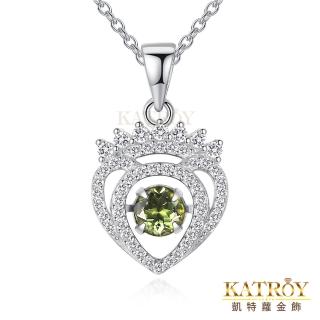 【KATROY】天然碧璽 925純銀 皇冠 天然寶石 愛心造型 懸浮閃動 跳舞石 項鍊 PG6071(綠碧璽)