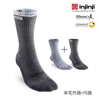 【Injinji】男款吸排/羊毛中筒健行襪組(石墨灰)(爬山專用 登山用品 羊毛材質 抗菌防臭襪)