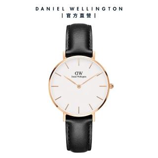 【Daniel Wellington】Petite Sheffield 32mm爵士黑真皮皮革錶(DW手錶男錶女錶DW00100174)