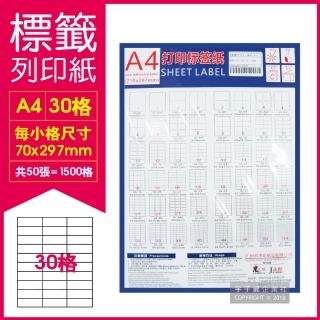 【火雞牌Turkey】A4電腦標籤紙列印紙 30格 每包50張(影印、雷射、噴墨三用紙)
