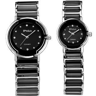 【POLO】時尚知性晶鑽陶瓷男女對錶(黑白兩色-37mm)