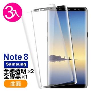 三星 Note8 曲面9H玻璃鋼化膜手機保護貼 全膠黑 全膠透明(3入 Note8 保護貼 Note8鋼化膜)