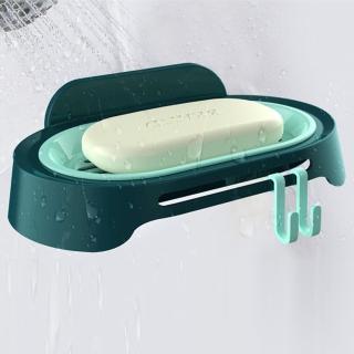 撞色雙層橫線瀝水附掛勾肥皂盒(1入)