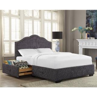 【FL 滿屋生活】FL ALPI 阿貝斯-5尺藍織紋收納抽屜鉚釘實木高背床架(實木床架/高背床架/歐美款型/抽屜床)
