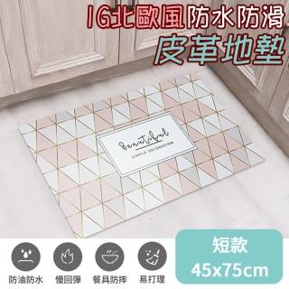 【半島良品】頂級慢回彈防油防滑皮革地墊_45x75cm_幾何圖(止滑 防水 免打理 回彈 可愛)