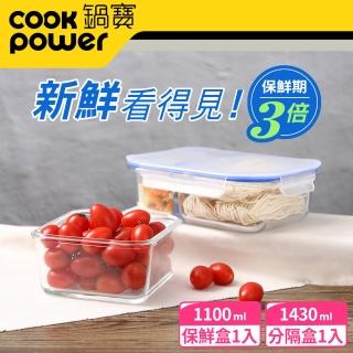 【CookPower 鍋寶】大容量耐熱玻璃保鮮盒1+1件組(EO-BVC11021BVG1431)