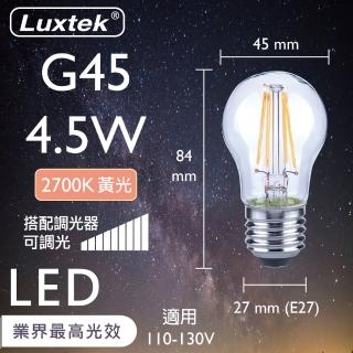 【Luxtek樂施達】買四送一 Led 小球型燈泡 可調光 4.5W E27 黃光 5入(燈絲燈 仿鎢絲燈 同6W LED燈)