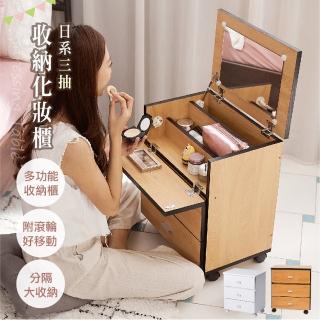 【Ashley House】MIT日系小資女三抽收納多功能機能性化妝車/床頭櫃(2色可選)
