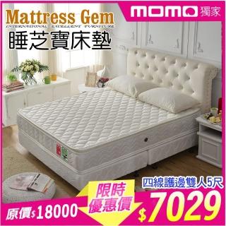 【睡芝寶】真四線+抗菌3M防潑水+護邊+蜂巢式獨立筒床墊(雙人5尺-護腰床正反可睡)
