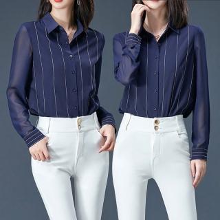 【麗質達人】007藍色條紋拼接襯杉(M-4XL)