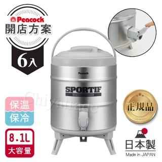 【日本孔雀Peacock】高質感不鏽鋼保溫桶保冷桶 茶桶 露營 開店方案-8.1L 日本製(6入組)