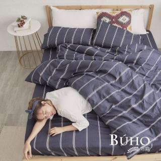 【BUHO布歐】精梳棉條紋三件式床包枕套組藍幽漸朗(雙人)