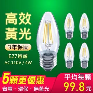 【朝日光電】4W大尖LED燈絲燈泡E27黃光-5入(LED燈絲燈泡)