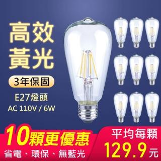 【朝日光電】6W牛奶LED燈泡E27黃光-10入(LED燈絲燈泡)