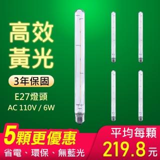 【朝日光電】6W條型LED燈絲燈泡30cmE27黃光-5入(LED燈絲燈泡)