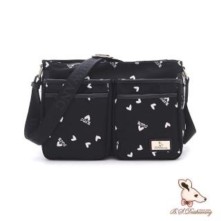 【冰山袋鼠】勾心紅妝-甜美刺繡雙口袋側背包-心型粉(G073K)