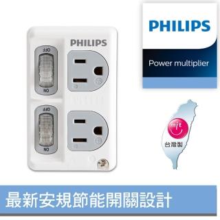 【Philips 飛利浦】2開2電腦壁插 新安規 節能開關 - 白色(SPB1421)