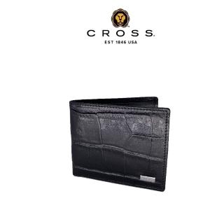 【CROSS】頂級NAPPA小牛皮4卡1零錢袋鱷魚紋咬錢男用皮夾索貝克系列(黑色)